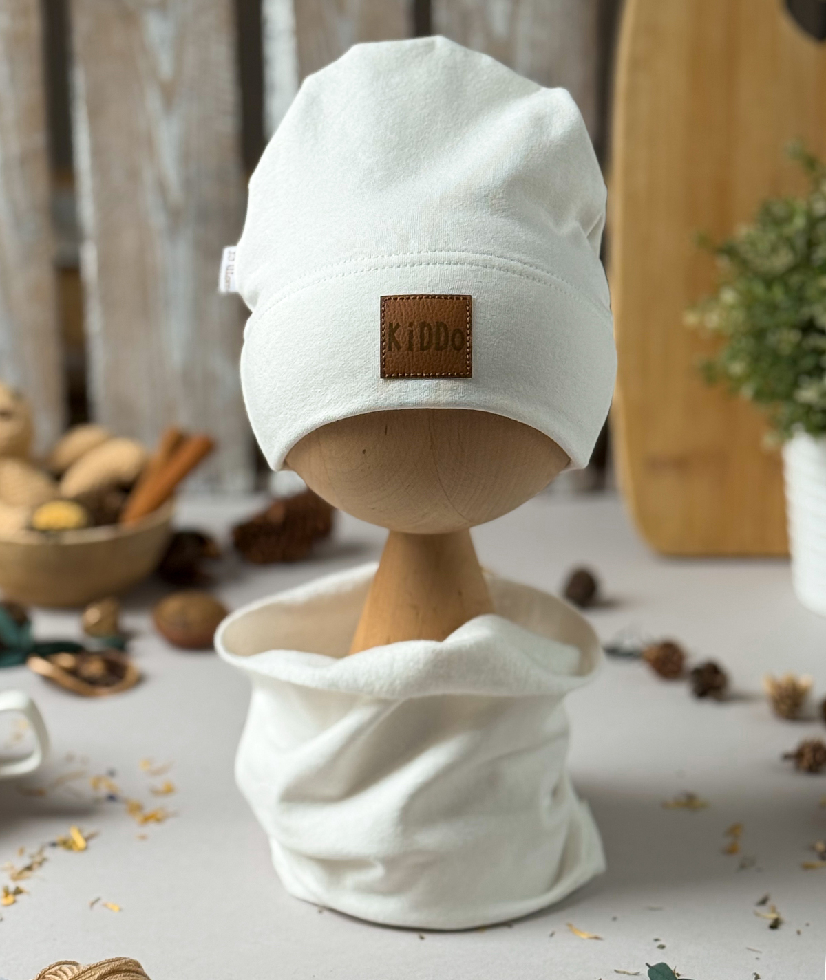 Czapka i komin z miękkiej, elastycznej dzianiny typu dresówka – wykonany z wysokogatunkowej bawełny, zapewnia komfort i ciepło w chłodniejsze dni, idealnie dopasowuje się do główki i szyi dziecka, nie uciska, a jednocześnie skutecznie chroni przed wiatrem; dostępny w trzech modnych kolorach, świetnie sprawdzi się zarówno na spacer, jak i do przedszkola czy szkoły.e zarówno dla chłopców, jak i dziewczynek. Połącz go z pasującą czapką z uszami misia i stwórz idealny, jesienny komplet dla swojego dziecka!