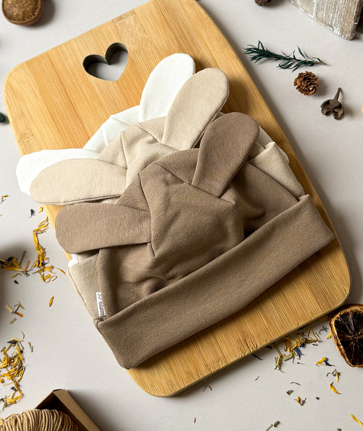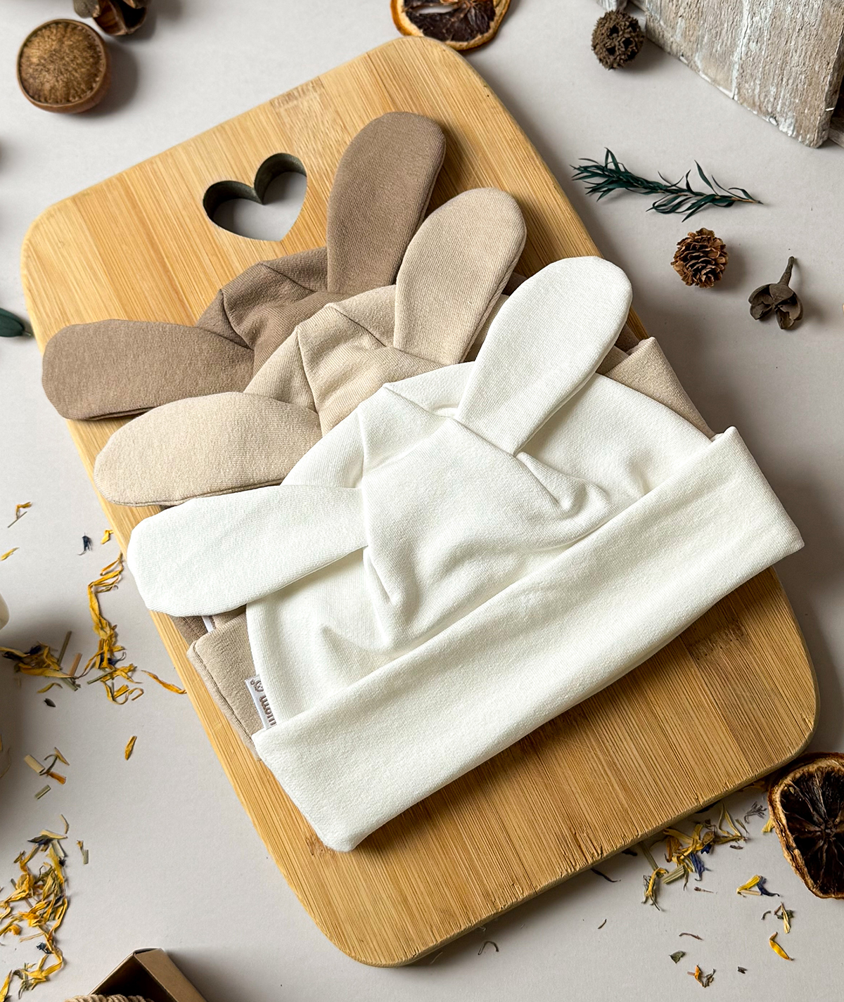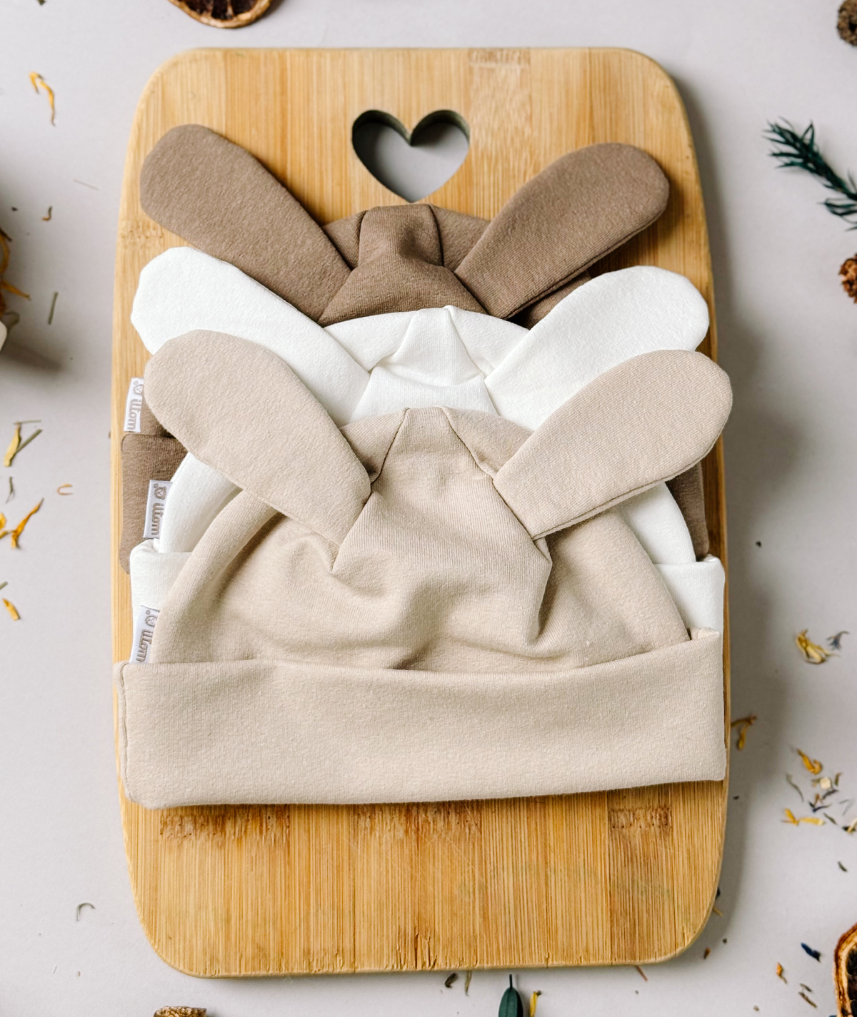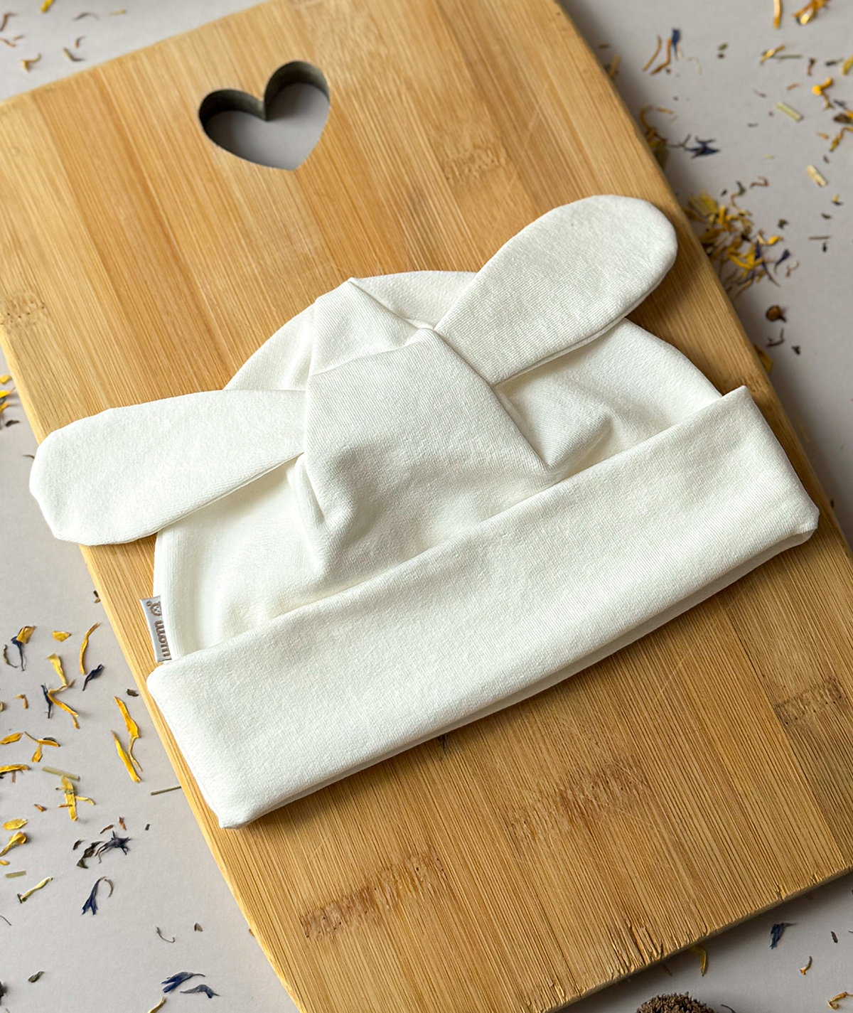 Czapka dziecięca z uszami króliczka – miękka, elastyczna i pełna uroku.