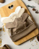 Idealna na przejściowe dni wiosny i jesieni, ta urocza czapka została uszyta z miękkiej, oddychającej dzianiny typu dresówka. Elastyczny materiał sprawia, że czapka doskonale dopasowuje się do głowy dziecka, nie uciskając i zapewniając pełną swobodę ruchu. Czapka wyróżnia się ozdobnymi uszami króliczka, które dodają jej wyjątkowego charakteru i dziecięcego uroku. Stylowe wywinięcie nie tylko zwiększa komfort noszenia, ale też podkreśla staranne wykończenie produktu. Dostępna w trzech modnych kolorach – ecru, beżowy, latte – oraz ozdobiona delikatną aplikacją, która dopełnia całość w stylu „sweet & comfy”. Ta czapka to nie tylko ochrona przed chłodem, ale też stylowy dodatek, który pokocha każde dziecko!