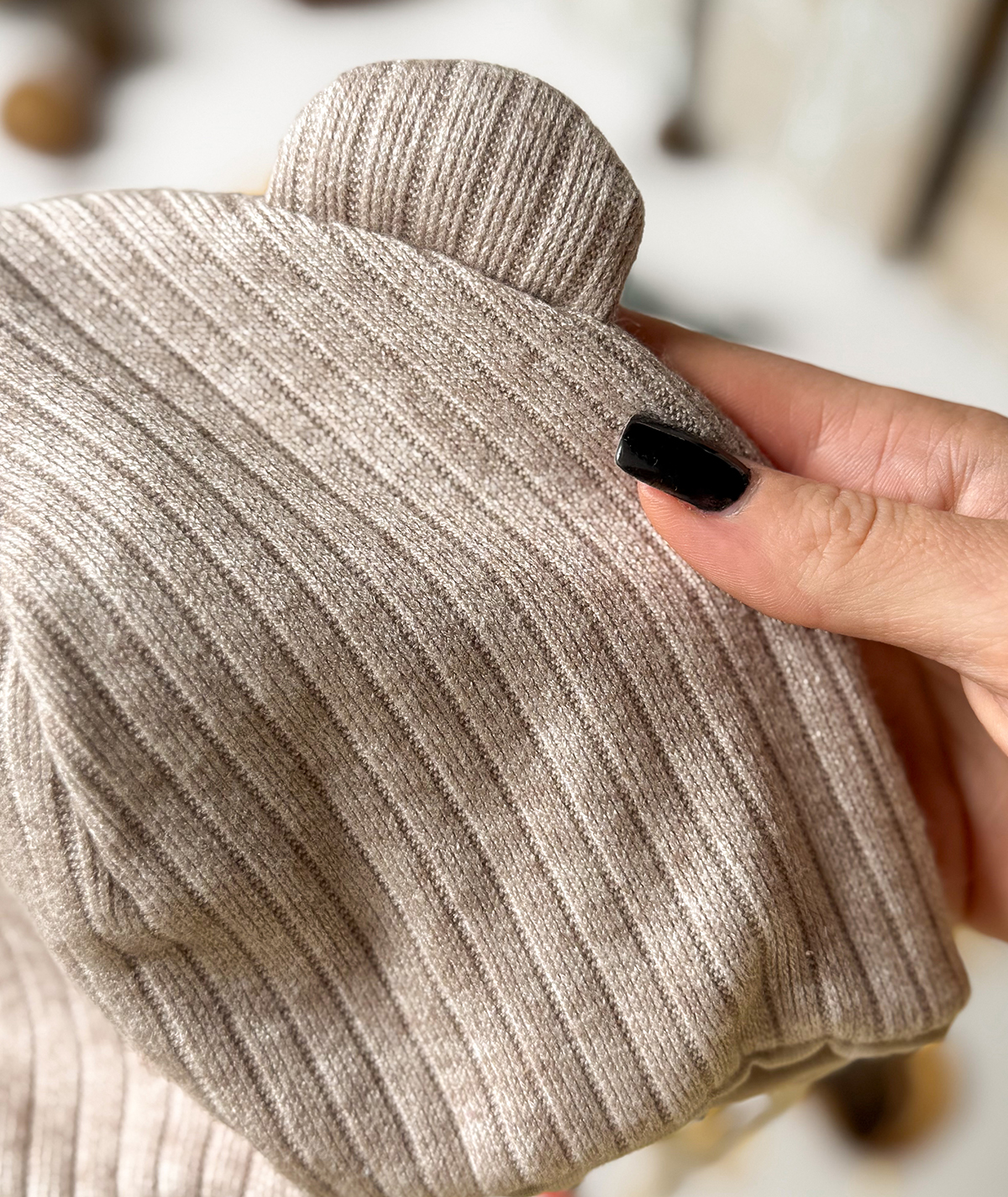 Ta urocza czapka dziecięca na jesień została uszyta z miękkiej, elastycznej dzianiny typu sweterek w prążek, która doskonale dopasowuje się do głowy dziecka i dodaje całości stylowego, a zarazem przytulnego wyglądu. Czapka ma podwójną warstwę – zewnętrzną dzianinową oraz wewnętrzną z 100% bawełny, co gwarantuje ciepło i pełen komfort noszenia bez przegrzewania i podrażnień. Czapka posiada praktyczne wiązanie pod brodą, które zapewnia, że pozostanie na miejscu nawet podczas aktywnej zabawy. Jej największym urokiem są jednak ozdobne uszy w kształcie misia, które sprawiają, że każdy maluch wygląda w niej rozczulająco i radośnie. Dostępna w czterech modnych kolorach – beżowy melanż, popiel melanż, brąz, grafit – świetnie komponuje się z codziennymi stylizacjami. Wygodna, stylowa i rozczulająca – czapka, którą Twoje dziecko pokocha od pierwszego założenia!