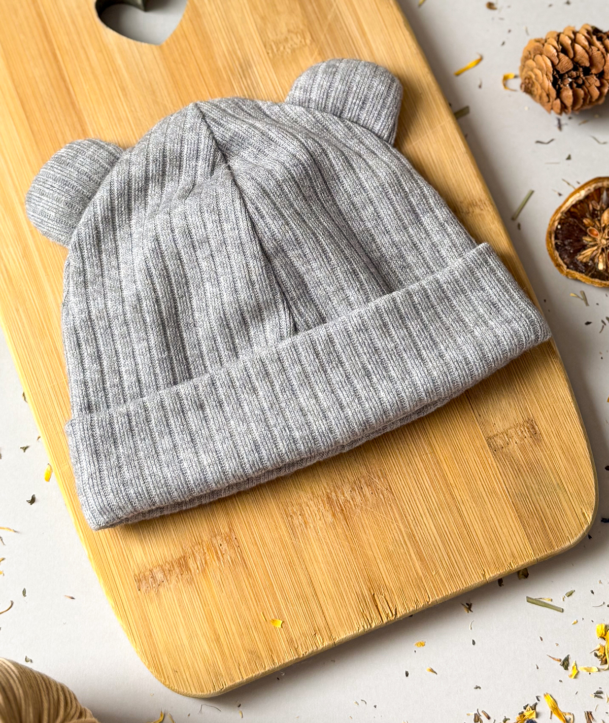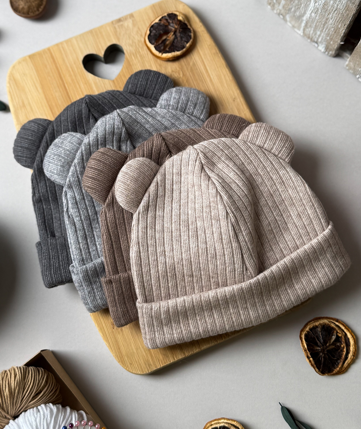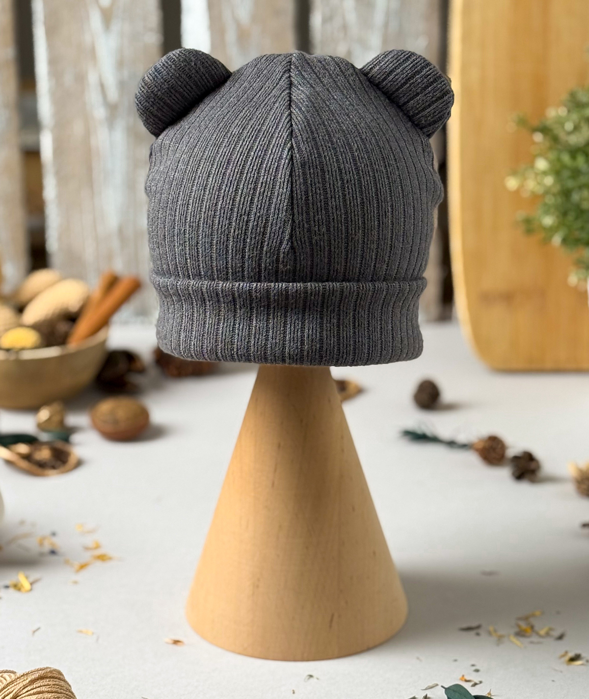 Czapka dziecięca z uszami misia – podwójna, z wywinięciem i miękką podszewką.