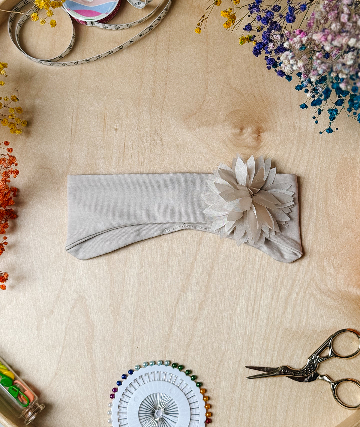 Opaska profilowana, bawełniana dla dziewczynki z ozdobnym kwiatem to stylowy i subtelny dodatek, który pięknie dopełni dziecięce stylizacje na co dzień i na wyjątkowe okazje. Wykonana z miękkiej, przyjemnej w dotyku bawełny, delikatnie dopasowuje się do głowy, zapewniając komfort noszenia i estetyczne ułożenie. Profilowany kształt sprawia, że opaska świetnie prezentuje się na głowie, a ozdobny kwiat dodaje całości dziewczęcego uroku i elegancji, czyniąc ją idealnym wyborem do sukienek, zestawów spacerowych oraz sesji zdjęciowych. To ponadczasowy dodatek, który podkreśli styl i charakter każdej małej stylizacji.