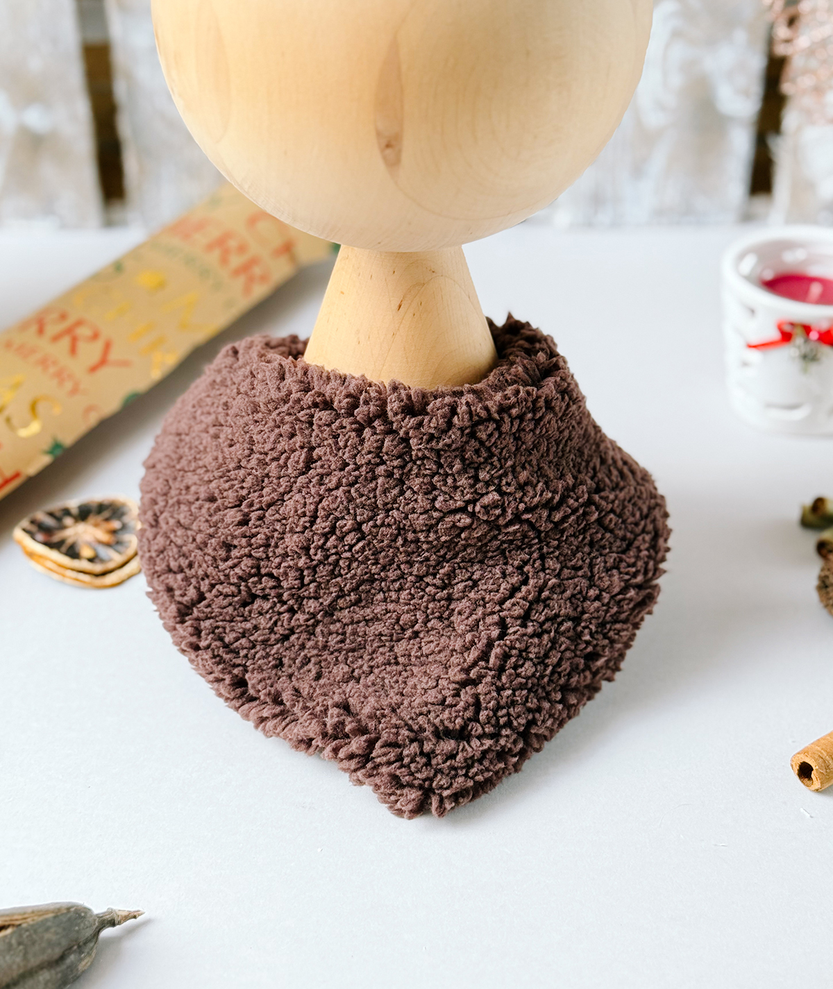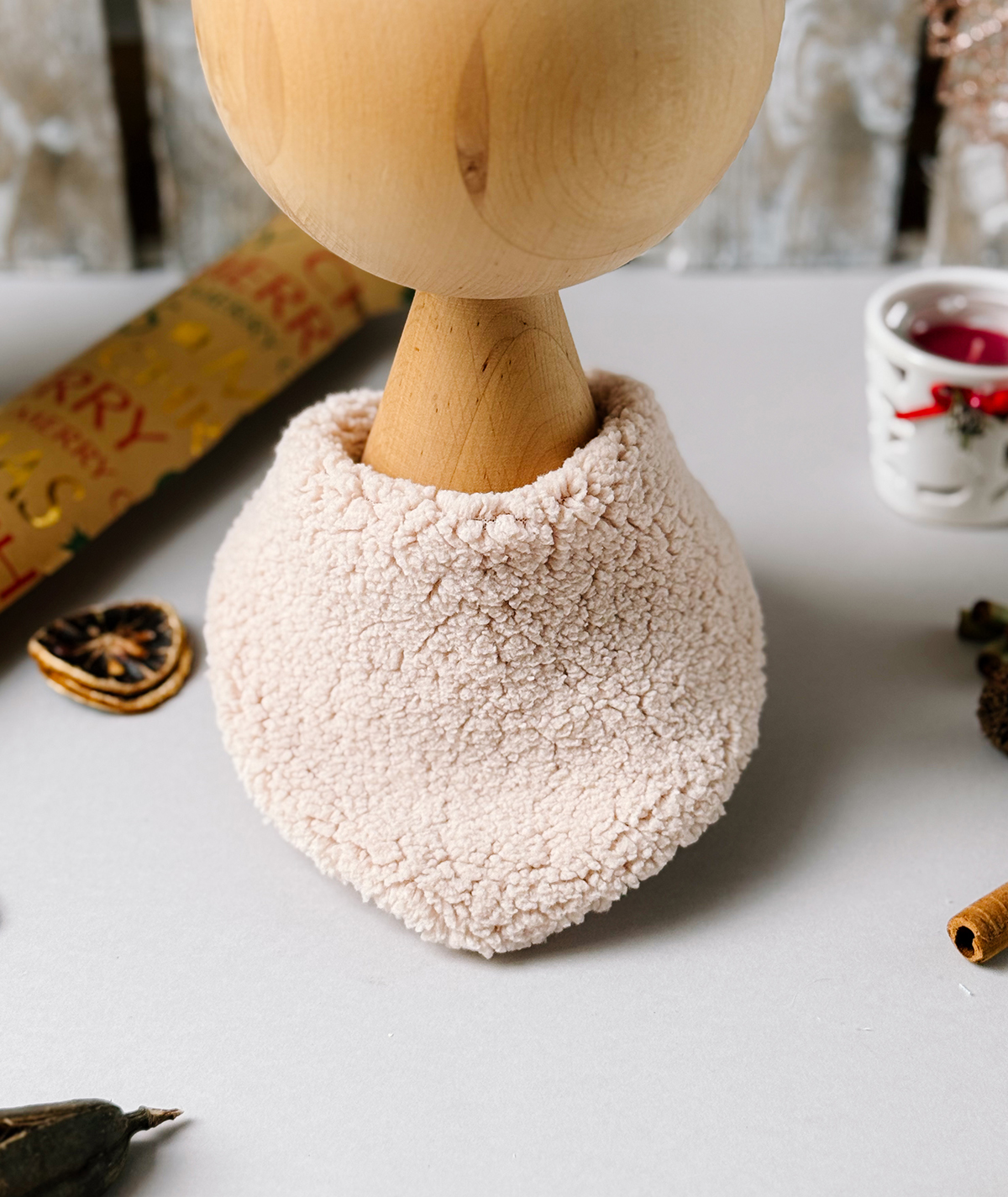 - miękki baranek na zewnątrz, bawełna od środka,