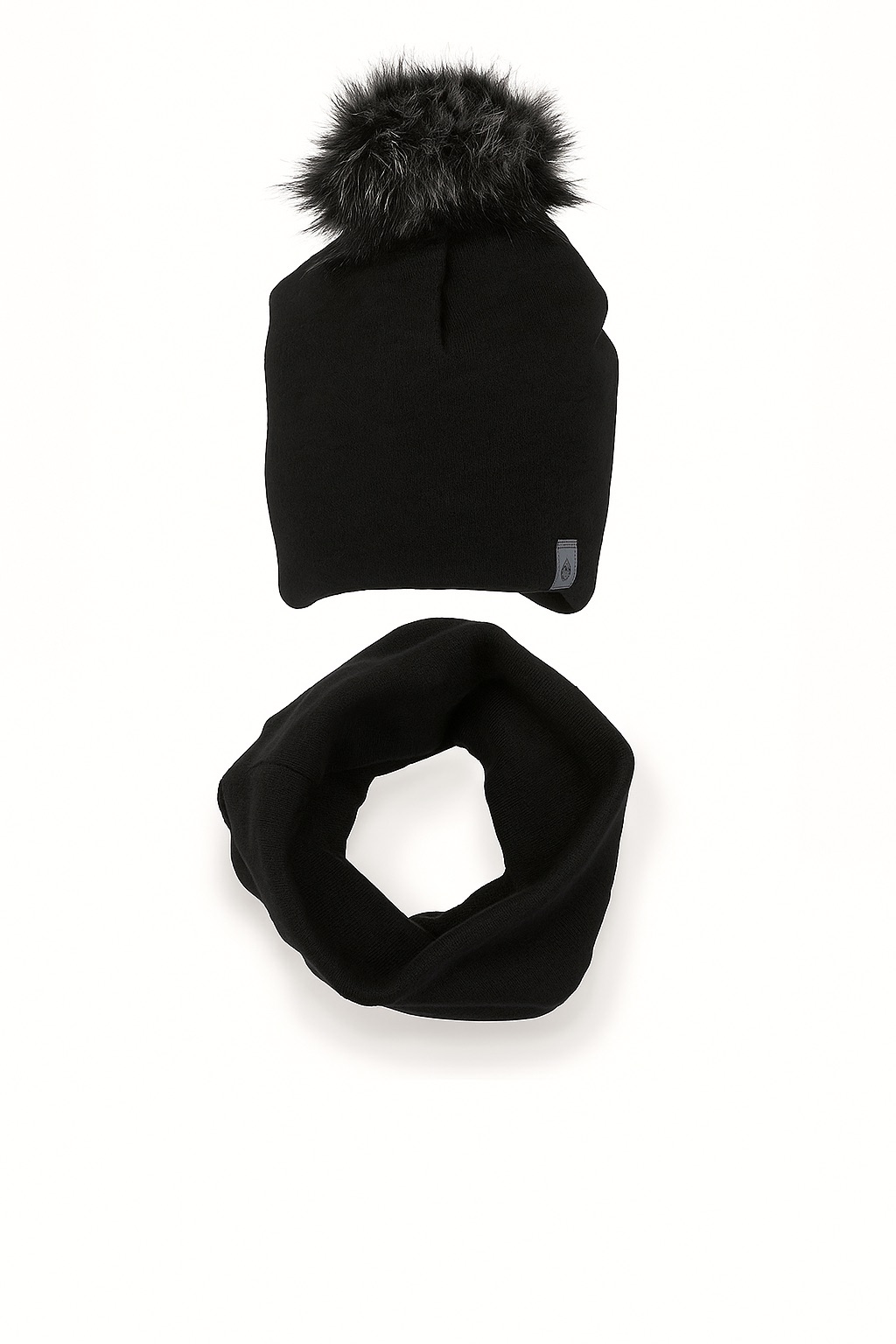 Zimowy komplet dziecięcy z bawełnianego sweterka. W skład kompletu wchodzi czapka z pomponem z włosia oraz komin/szal. Certyfikat „Bezpieczny dla dziecka”. *Zalecamy wybór mniejszego rozmiaru.