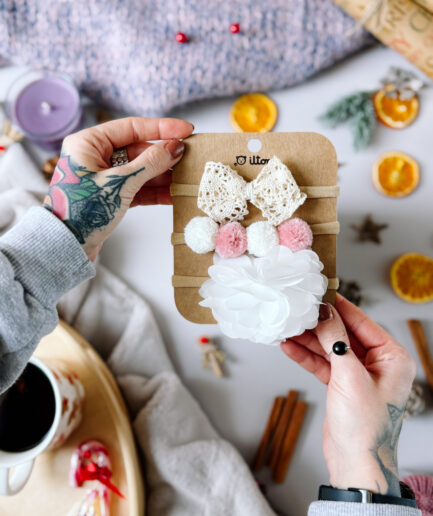 Opaska KIM dla dziewczynki z prążkowanej bawełny – przeplatana, ozdobna